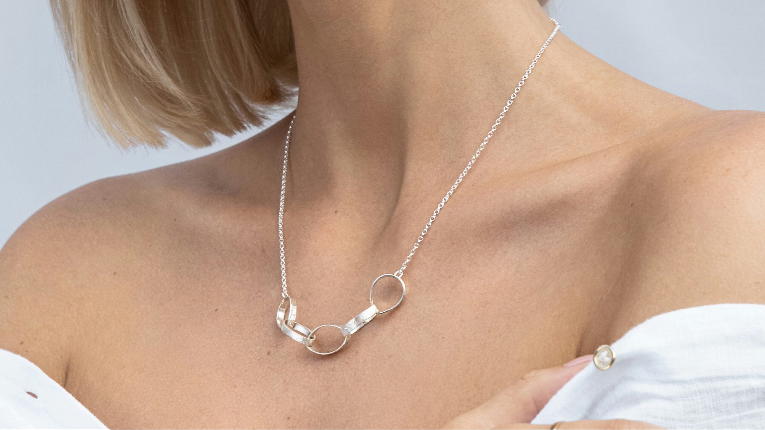 Hand-forged sterling silver organic multi-circle link pendants and earrings.Each piece showcases beautifully...