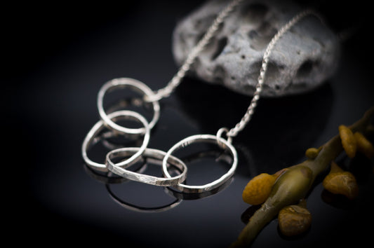 A petite collection of elegant sterling silver hoop earrings, bangles, and rings, each thoughtfully handmade in rural Galway.