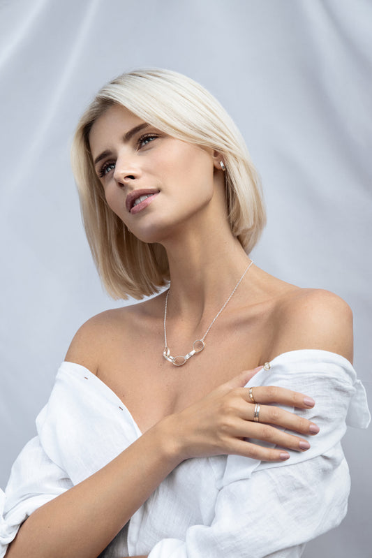 Inspired by the intricate markings, crevices, and cracks found in the Burren limestone, Talún is a collection of textured raindrop link jewellery that captures the essence of the western Irish landscape.