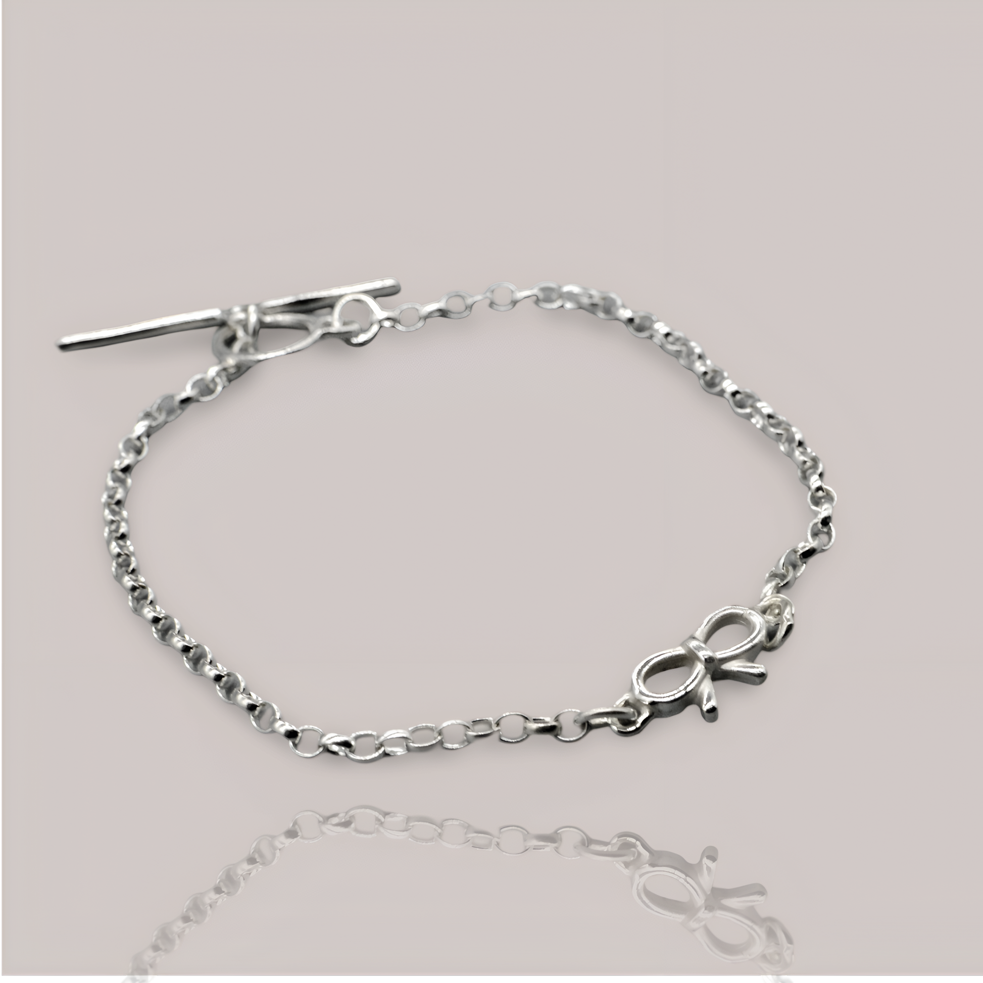 Secured with a classic T-bar clasp, this bracelet measures 7" in length and is designed for comfort and ease of wear — a tactile, grounding presence on the wrist.